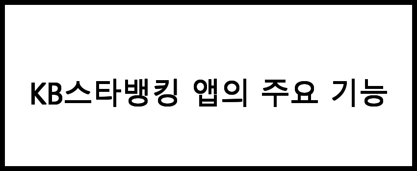 KB스타뱅킹 앱은 다양한 기능을 제공하여 사용자가 금융 거래를 원활하게 수행할 수 있도록 도와줍니다. 주요 기능은 다음과 같습니다.
