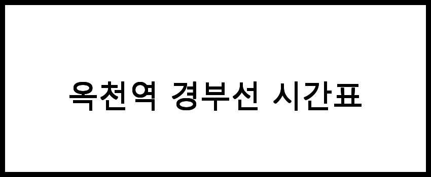 옥천역 경부선 시간표, 요금, 운행 정보 지금 바로 확인하세요