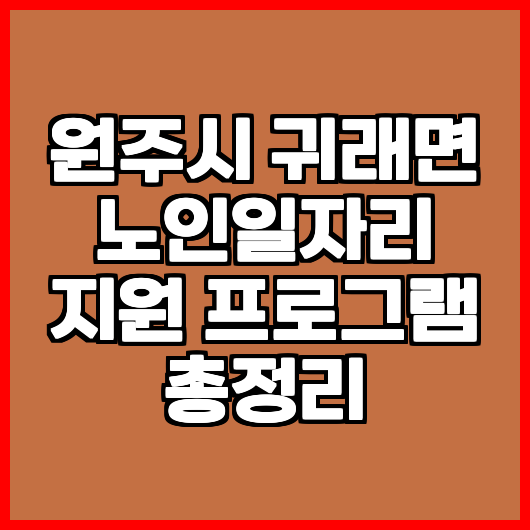 노인일자리 지원 프로그램은 원주시 귀래면의 관련 기관을 통해 신청할 수 있습니다. 구체적인 절차는 해당 기관에 문의하거나 공식 웹사이트를 참조하시기 바랍니다.